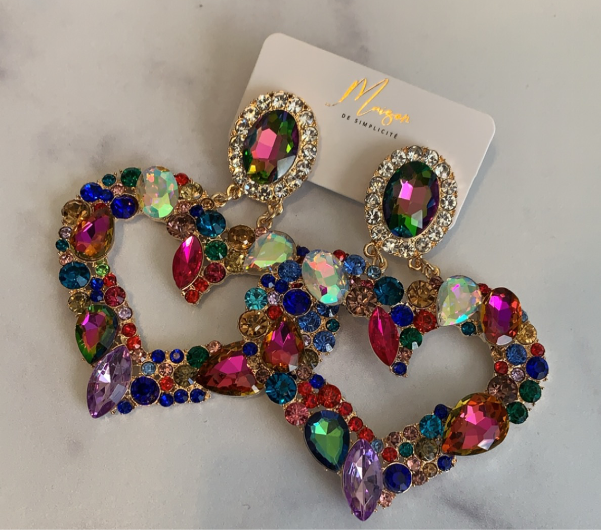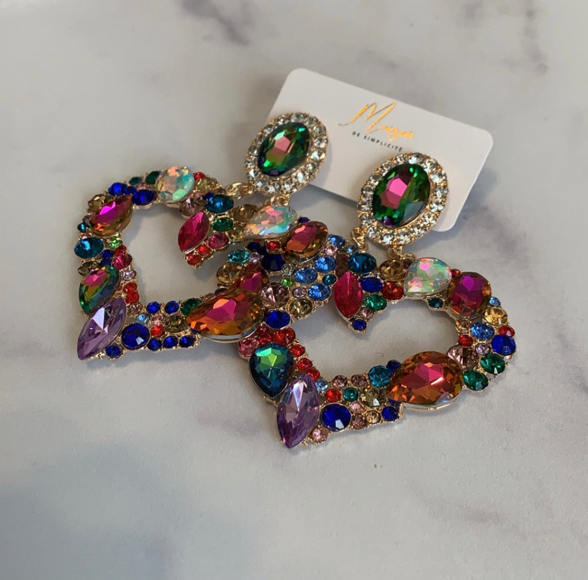 Multi color, heart shaped earrings.