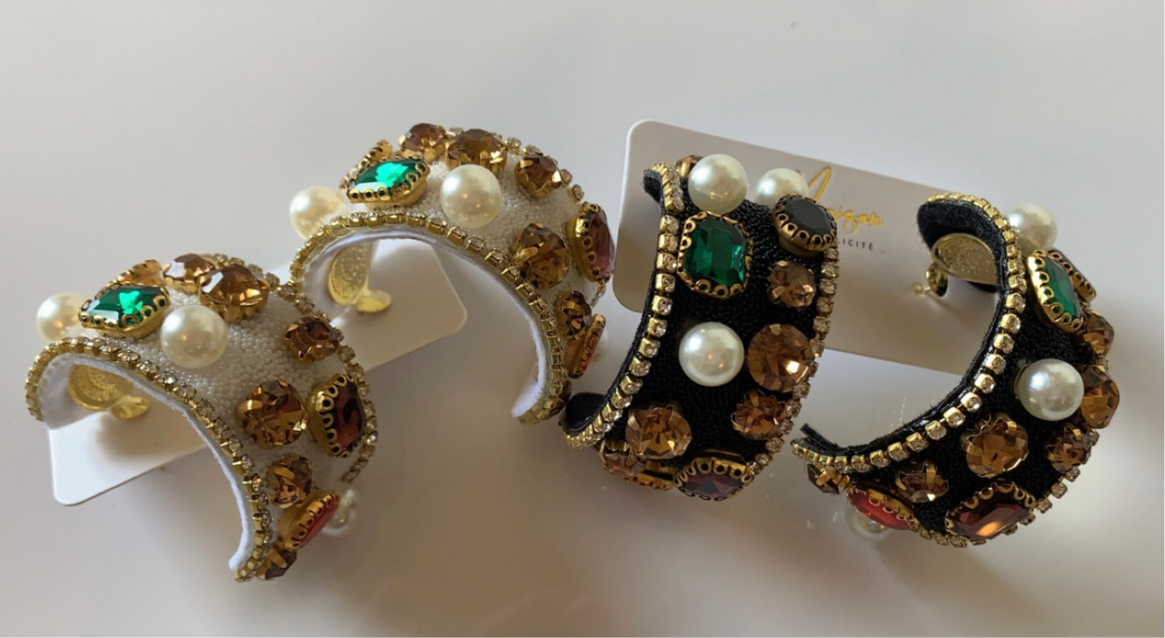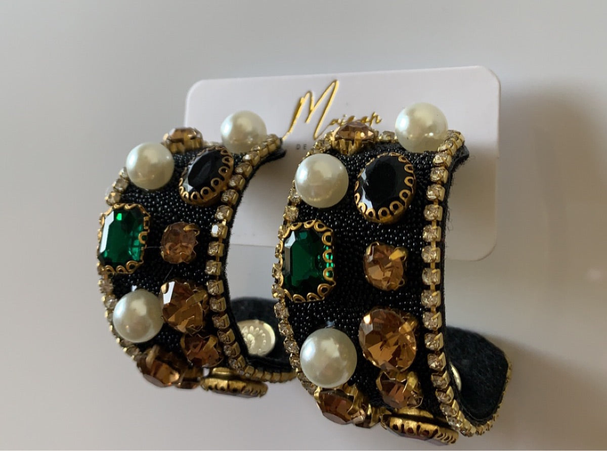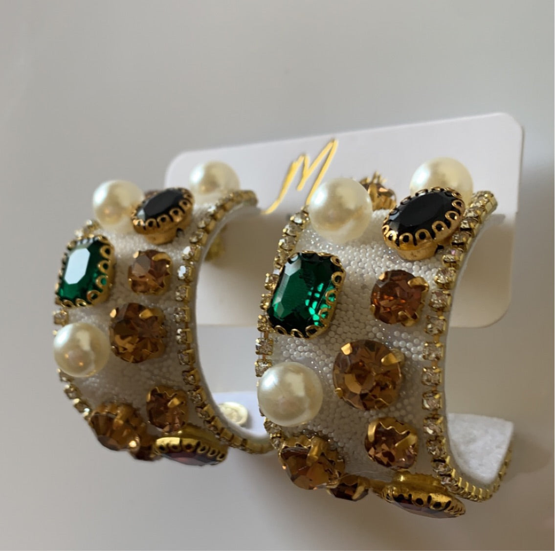 Rhinestone, Pearl, Gem hoop earrings