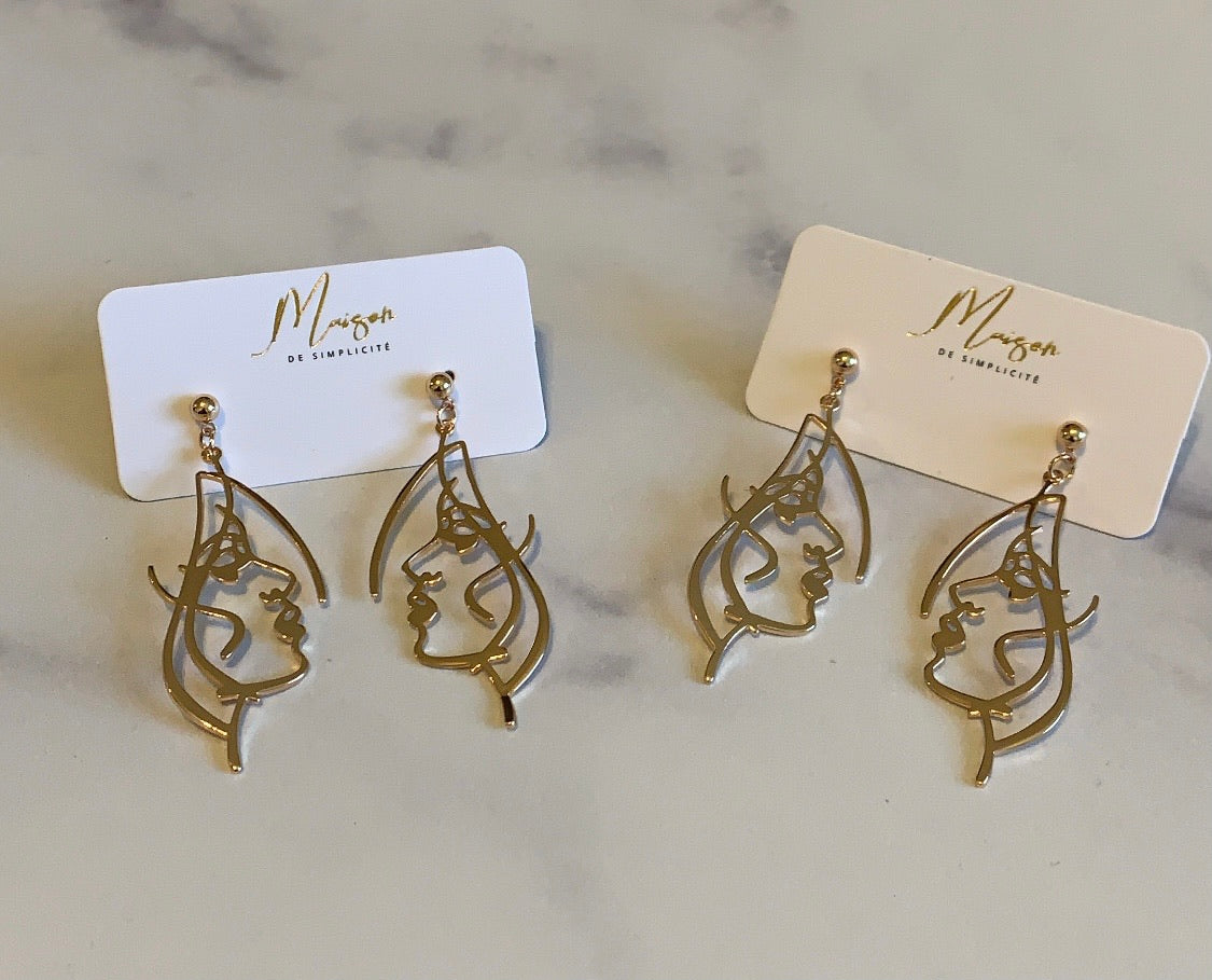Face shaped dangle earrings.