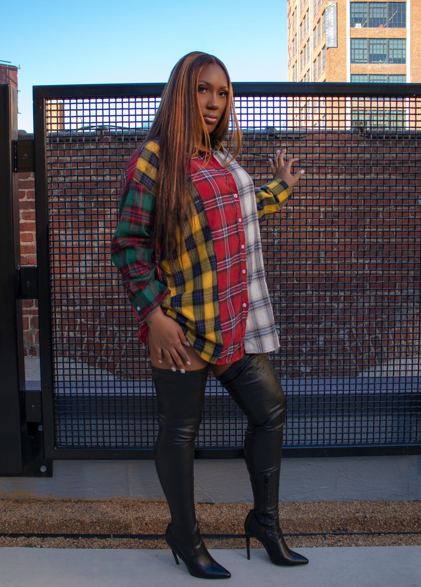 Oversized Color block Plaid Button Down Shirt. This is a versatile piece. Can be worn as a Shirt or Dress